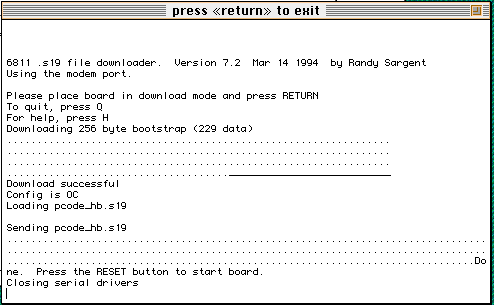mode. I.e. when you press the RETURN key on the MAC, the downloader will
